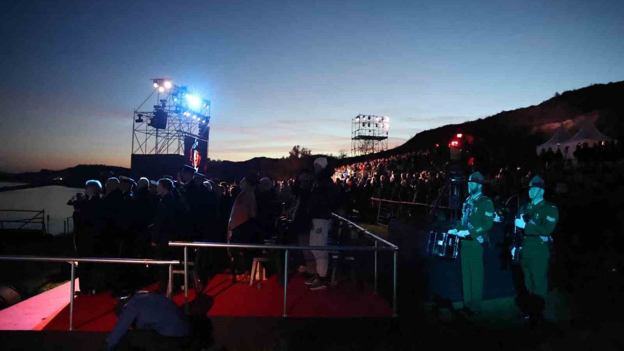 Çanakkale Kara Savaşları'nın 111. yıl dönümü anma törenleri çerçevesinde Tarihi Gelibolu Yarımadası'ndaki Anzak Koyu'nda geleneksel 'Şafak Ayini' yapıldı.