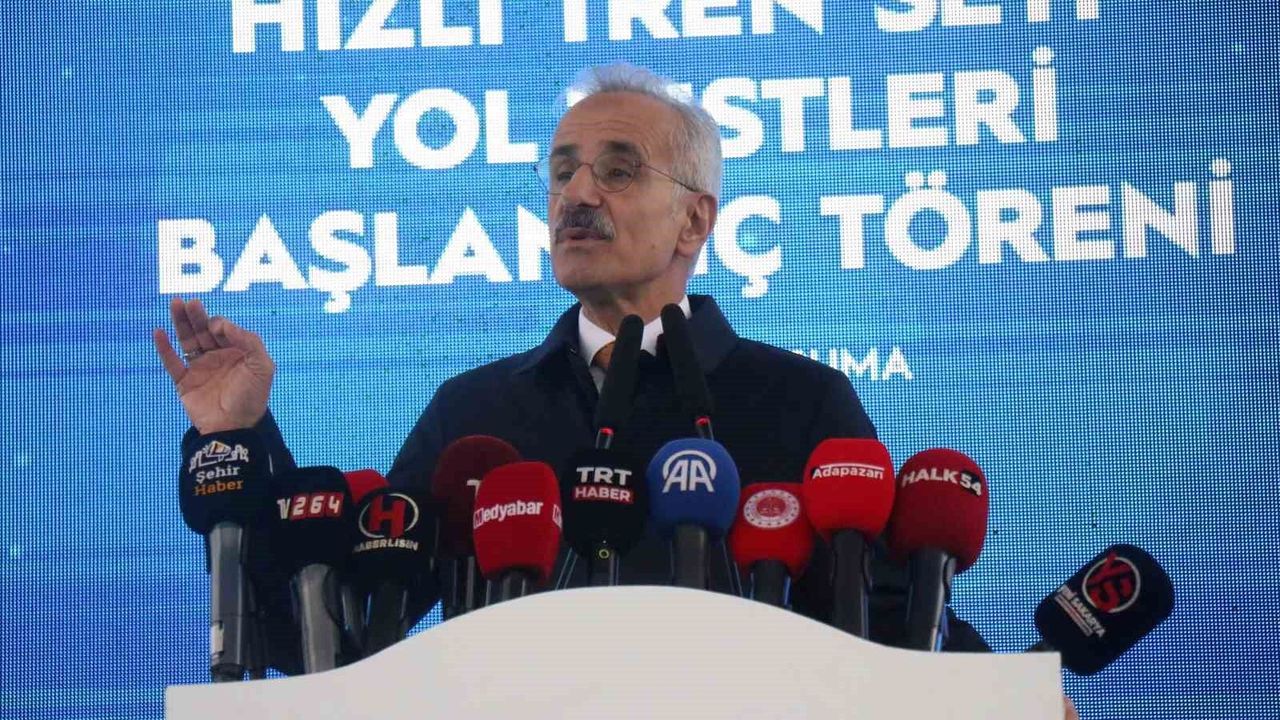Ulaştırma ve Altyapı Bakanı Abdulkadir Uraloğlu, Türkiye'nin 225 kilometre hıza sahip ilk milli elektrikli hızlı treninin raylara inişi ve yol testlerine başlama törenine katlıdı. Törende konuşan Uraloğlu, 'Bugün Türkiye'nin 225 kilometre hıza sahip ilk milli elektrikli hızlı treninin raylara inişi ve yol testlerinin başlamasıyla tarihi bir ana tanıklık etmek üzere bir aradayız. Bu gurur verici adım, milletimizin azmi, mühendislerimizin emeği ve TÜRASAŞ'ın köklü birikimiyle vücut bulmuştur. Bu milli zaferi birlikte kutlamaktan büyük mutluluk duyuyorum' dedi.
