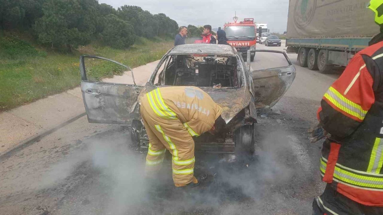 Biga-Bandırma Karayolu, Marmara OSB yakınlarında bir araç yangınına sahne oldu. Edinilen bilgilere göre, 16 AN 202 plakalı araçta henüz belirlenemeyen bir nedenle yangın çıktı. Kısa sürede büyüyen alevler, aracı sararken, sürücü durumu fark ederek aracı yol kenarına çekti.