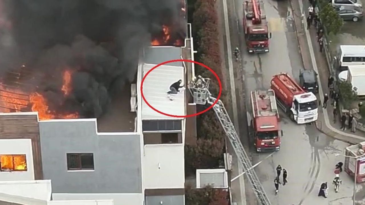 Yangın, saat 11.30 sıralarında meydana geldi. Çatıdan yükselen yoğun dumanı fark eden çevredeki vatandaşların ihbarı üzerine, çok sayıda itfaiye, sağlık ve polis ekibi olay yerine yönlendirildi. Kısa sürede büyüyen alevler paniğe yol açarken, ekipler hızla çatı katındaki mahsur kalan vatandaşa ulaştı. O anlar, kameralar tarafından kaydedildi.