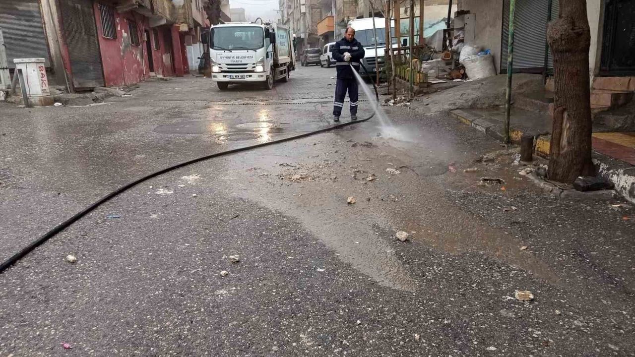 Şanlıurfa'nın Eyyübiye ilçesinde, belediye ekipleri su baskınlarından etkilenen mahallelerde temizlik faaliyetlerine devam ediyor. 22 Mart'ta meydana gelen yoğun yağışlar, bazı bölgelerde hafif su baskınlarına yol açtı. Eyyübiye Belediye Başkanı Mehmet Kuş, yaşanan durumu yerinde değerlendirerek, vatandaşlara geçmiş olsun dileklerini iletti ve tüm ekipleri alarma geçirdi. Başkan Kuş'un talimatıyla, su baskınından etkilenen evlerde ve sokaklarda temizlik çalışmaları başlatıldı. Fen işleri, çevre koruma ve kontrol, temizlik işleri ile zabıta müdürlüğü ekipleri, kesintisiz bir şekilde çalışmalarını sürdürerek çok sayıda ev ve sokağı temizledi. Ayrıca, mahalle muhtarları temizlik süreçlerine gözetim yaparak destek sağladı.