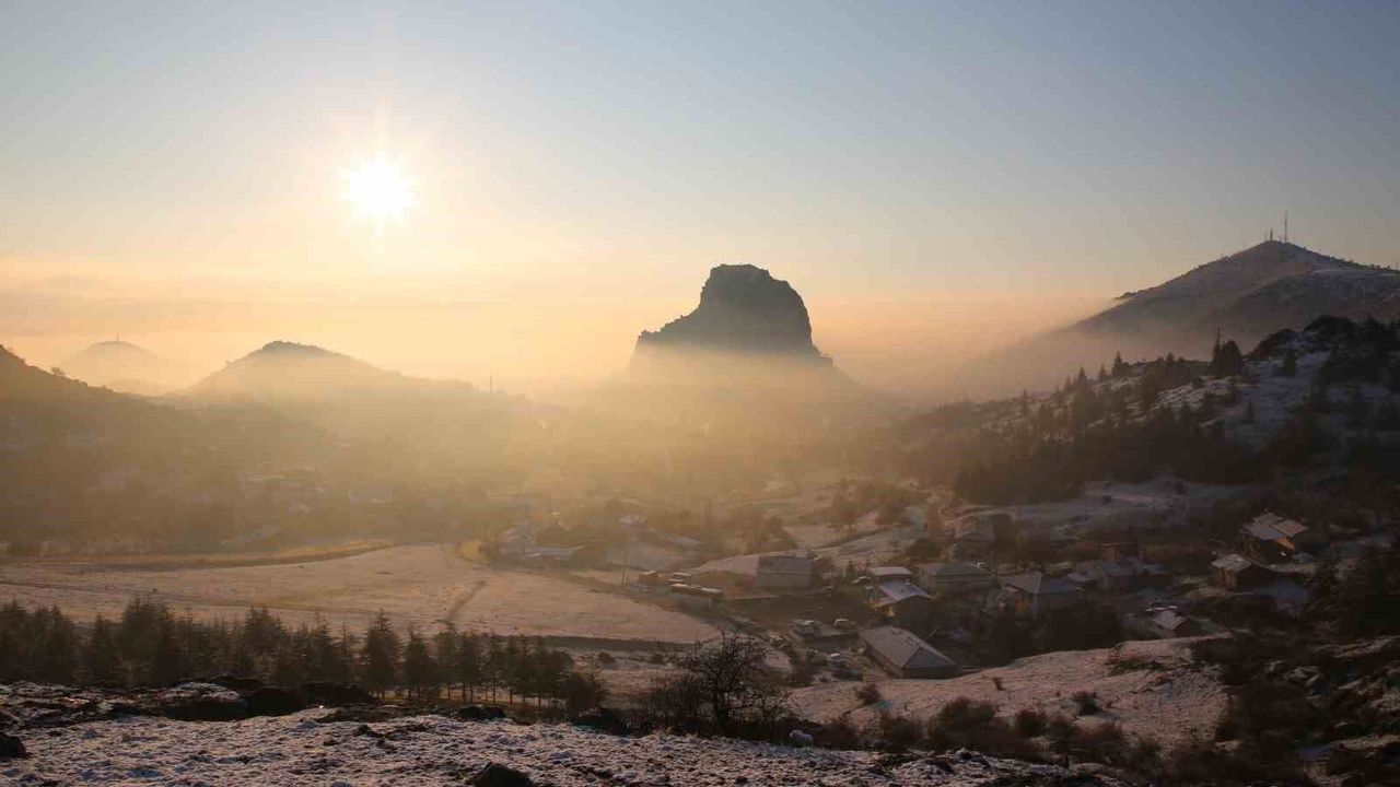 Afyonkarahisar'ın simgesi olan tarihi Karahisar Kalesi, gün doğumuyla birlikte ortaya çıkan sisli manzarasıyla göz kamaştırdı. Bu etkileyici görüntü, sabahın erken saatlerinde yaşanan sisli hava koşulları sayesinde oluştu.