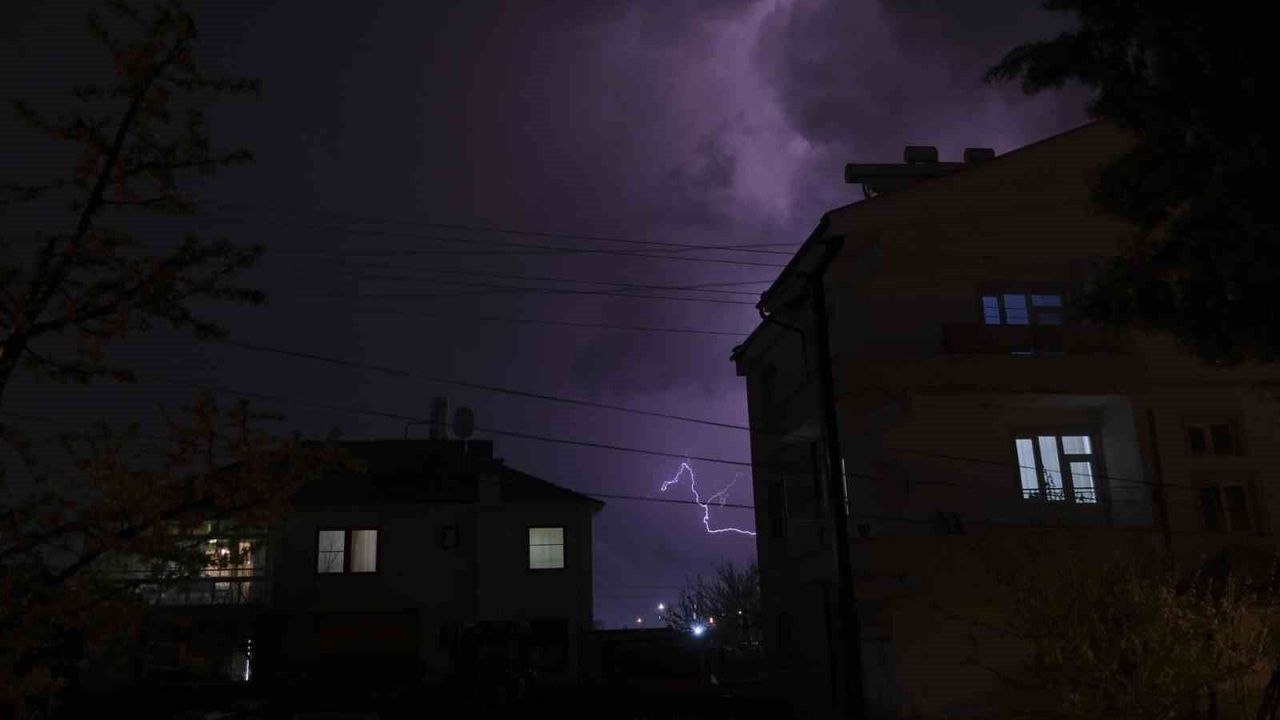 Karaman'da, gök gürültülü sağanak yağış uyarısının ardından gece boyunca çakan şimşekler, gökyüzünde adeta bir görsel şölen sundu.