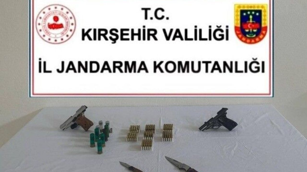 Kırşehir İl Jandarma Komutanlığı, ruhsatsız silahlarla ilgili bir operasyon gerçekleştirdi. Yapılan çalışmalarda, A.U. isimli şahsın ruhsatsız silah bulundurduğu tespit edildi. Akpınar İlçe Jandarma Komutanlığı ekipleri, alınan arama kararı doğrultusunda şüphelinin evinde ve aracında arama yaptı. Yapılan aramalarda; 1 adet ruhsatsız kuru sıkı tabanca, 1 adet ruhsatsız tabanca, 3 adet şarjör, 1 adet ses fişeği, 167 adet tabanca fişeği, 9 adet av tüfeği kartuşu ve 2 adet bıçak ele geçirildi. Soruşturmanın sürdüğü belirtildi.