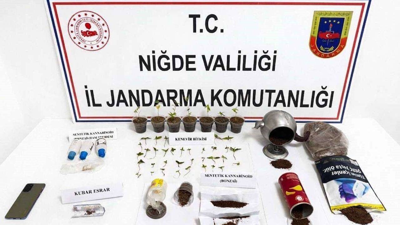 Niğde İl Jandarma Komutanlığı'na bağlı ekipler, uyuşturucu ile mücadele çalışmaları kapsamında Bor ilçesindeki Bahçeli Beldesi'nde bir şahsı yakaladı. Gerçekleştirilen operasyonda, yakalanan kişinin üzerinde ve evinde yapılan aramalar neticesinde, toplam 566 gram uyuşturucu madde, 45 kök kenevir bitkisi ve 1 adet cep telefonu ele geçirildi. Olayla ilgili olarak gözaltına alınan şahıs hakkında adli işlemlerin başlatıldığı bildirildi.