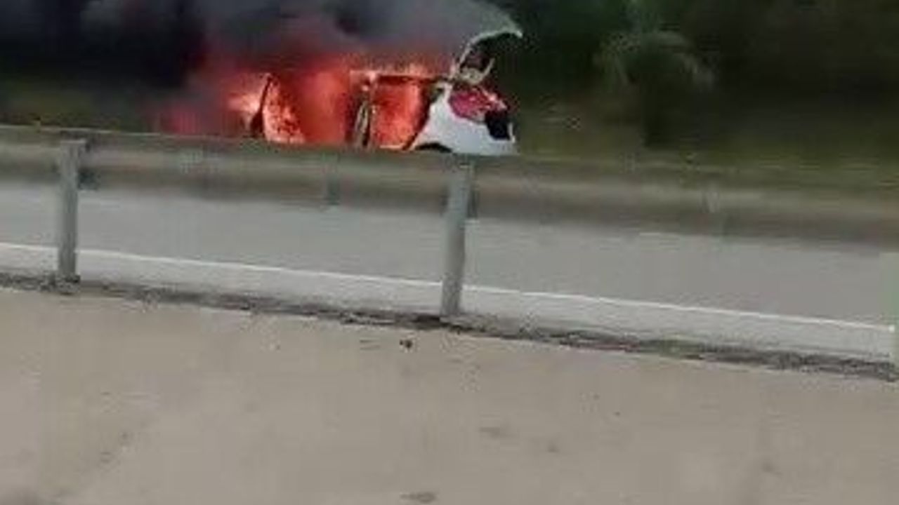 Bursa'da, Karacabey-Bandırma istikametinde seyir halindeki bir otomobil, henüz bilinmeyen bir sebepten dolayı alev aldı. Yangın, kısa sürede büyüyerek çevredeki sürücülerde büyük bir panik yarattı.