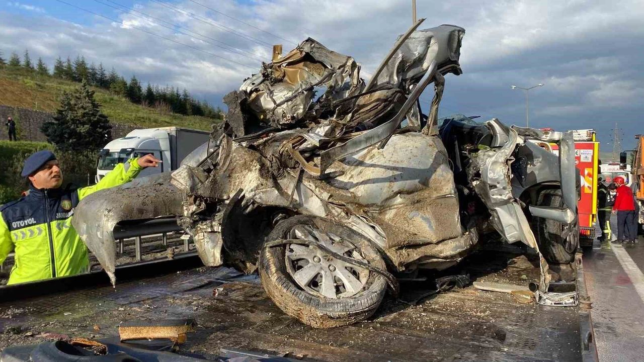 TEM Otoyolu'nun Kocaeli kesiminde, LPG yüklü bir tanker ile iki tırın karıştığı zincirleme kazada iki kişi yaşamını yitirdi. Kazanın ardından Ankara yönünde uzun araç kuyrukları oluştu ve trafik akışı kontrollü bir şekilde sağlanmaya başladı.nKaza, saat 15.30 sularında TEM Otoyolu İzmit geçişindeki Malta Mahallesi civarında gerçekleşti. Edinilen bilgilere göre, Ankara yönünde ilerleyen İzzet Kaysi'nin kullandığı 34 VE 5842 plakalı otomobil, sürücülerinin kimliği henüz belirlenemeyen 34 HG 9019 plakalı mıcır yüklü tır, 06 FH 8538 plakalı tır ve 02 EB 786 plakalı LPG yüklü tankerle çarpıştı.nÇarpışmanın etkisiyle 34 HG 9019 plakalı tırın dorsesi devrilirken, yüklü mıcırlar yola dağıldı. Devrilen dorsenin altında kalan otomobildeki sürücü İzzet Kaysi (78) ve eşi Mesude Kaysi (73) araç içinde sıkıştı.nOlayın bildirilmesi üzerine, itfaiye, sağlık ve polis ekipleri bölgeye sevk edildi. İtfaiye ekiplerinin yoğun çabasıyla araçtan çıkarılan İzzet ve Mesude Kaysi çiftinin, sağlık ekiplerince yapılan kontrollerde hayatlarını kaybettikleri belirlendi. Çiftin cenazeleri, otopsi işlemleri için morga kaldırıldı.nKaza nedeniyle TEM Otoyolu'nun Ankara yönü bir süre ulaşıma kapandı ve bölgede kilometrelerce araç kuyruğu oluştu. Jandarma ekipleri, sürücüleri Kurçeşme (Batı) TEM gişelerinden D-100 kara yoluna yönlendirdi. Araçların kaldırılması ve yolun temizlenmesinin ardından trafik akışı kontrollü bir şekilde yeniden sağlanmaya başladı.nAyrıca, otoyol havadan dron ile görüntülendi.