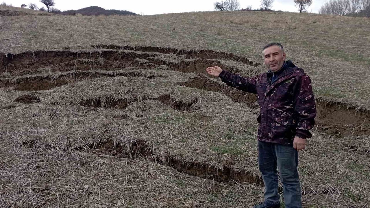 Tokat'ın Sulusaray ilçesinde etkili olan yoğun yağışlar sonrası heyelan oluştu ve bu durum tarım arazisini olumsuz etkiledi. Arpacı Karaçay köyünde meydana gelen toprak kaymasında, Zindan Ağzı mevkiindeki yaklaşık 200 metrekarelik tarım arazisi zarar gördü. Tarla sahibi Necmettin Türklü, son günlerde artan yağışların toprağı yumuşattığını ifade ederek, arazisinin bir kısmının kaydığını belirtti. Türklü, “Bu yılki aşırı yağışlar nedeniyle tarlamızın bir bölümünde heyelan meydana geldi. Yaklaşık 200 metrekarelik alan yer değiştirdi. Şu anda tarlamız kullanılamaz durumda. Neyse ki can kaybı ya da yaralanma yok” dedi. Heyelan sonucu tarım alanında derin yarıklar oluştuğu ve toprak kütlesinin aşağı kaydığı gözlemlendi. Olayda can kaybı yaşanmazken, maddi hasarın boyutunu belirlemek amacıyla bölgede inceleme başlatıldığı öğrenildi.