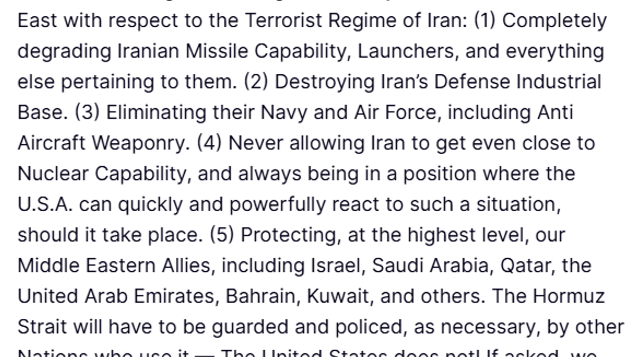 ABD Başkanı Donald Trump, İran'a karşı yürütülen askeri harekâtın adım adım sonlandırılabileceğini belirtti. Trump, sosyal medya üzerinden yaptığı açıklamada, “İran'daki rejime karşı Orta Doğu'da sürdürdüğümüz büyük askeri çabalarımızı azaltmayı düşünüyoruz ve hedeflerimize çok yaklaştık” dedi. Trump, İran ile ilgili hedeflerini şu şekilde sıraladı: “İran'ın füze kapasitesi ve fırlatma sistemlerini tamamen etkisiz hale getirmek, İran'ın savunma sanayisini yok etmek, uçaksavar silahları da dâhil olmak üzere İran'ın donanmasını ve hava kuvvetlerini ortadan kaldırmak, İran'ın nükleer silah üretme potansiyeline asla izin vermemek ve böyle bir durumun gerçekleşmesi halinde ABD'nin hızlı ve güçlü bir şekilde tepki verebileceği bir konumda kalmak. Ayrıca, İsrail, Suudi Arabistan, Katar, Birleşik Arap Emirlikleri, Bahreyn, Kuveyt ve diğer Orta Doğu ülkelerindeki müttefiklerimizi en üst düzeyde korumak” ifadelerini kullandı. Trump, Hürmüz Boğazı'nın güvenliğine de değinerek, “Hürmüz Boğazı, onu kullanan diğer ülkeler tarafından korunmalı ve denetlenmelidir. ABD orayı kullanmıyor” ifadesini kullandı. Ancak, talep edilmesi durumunda Hürmüz Boğazı'nın güvenliğini sağlama çabalarına destek verebileceklerini belirten Trump, “İran tehdidi ortadan kaldırıldığında buna gerek kalmamalıdır. Boğazın güvenliğini sağlamak bu ülkeler için kolay bir askeri operasyon olacaktır” şeklinde değerlendirmelerde bulundu.