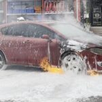 Çevredekiler, yangına ilk müdahaleyi yapmak için yangın tüpü kullanmaya başladı. Ancak alevler, kısa bir süre içinde aracın ön kısmını sarmayı başardı. Olayın büyümesi üzerine, hemen polise ve itfaiyeye haber verildi.