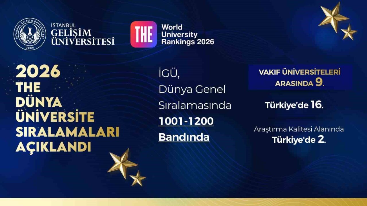 İstanbul Gelişim Üniversitesi (İGÜ), uluslararası yükseköğretim derecelendirme kuruluşu Times Higher Education (THE) tarafından yayınlanan 2026 Dünya Üniversite Sıralaması sonuçlarına göre, Türkiye’de vakıf üniversiteleri arasında 9. sırada yer alarak önemli bir başarıya imza attı. Ülke genelindeki sıralaması ise 16. oldu. Ayrıca, Araştırma Kalitesi alanında Türkiye’nde 2. sırayı kazanarak dikkatleri üzerine çekti.