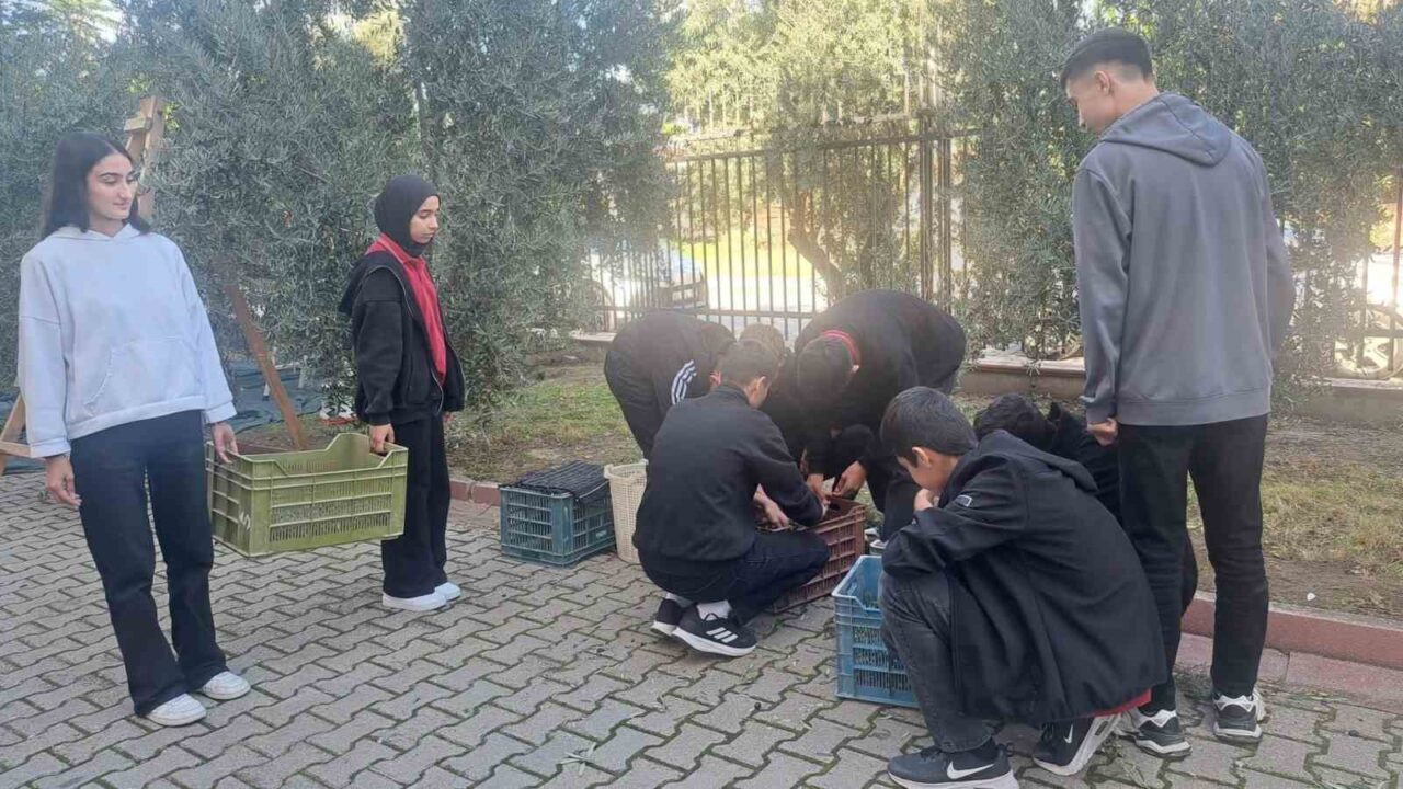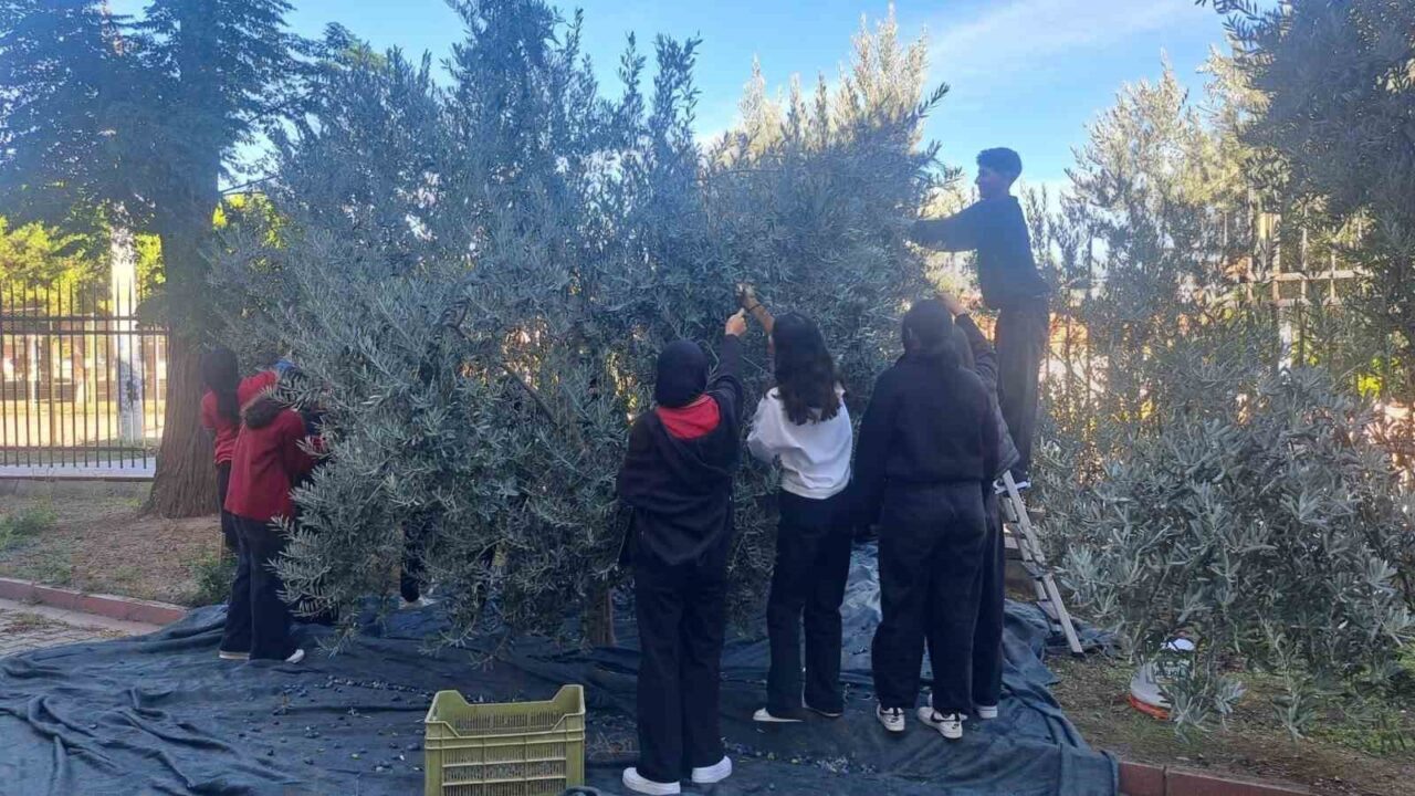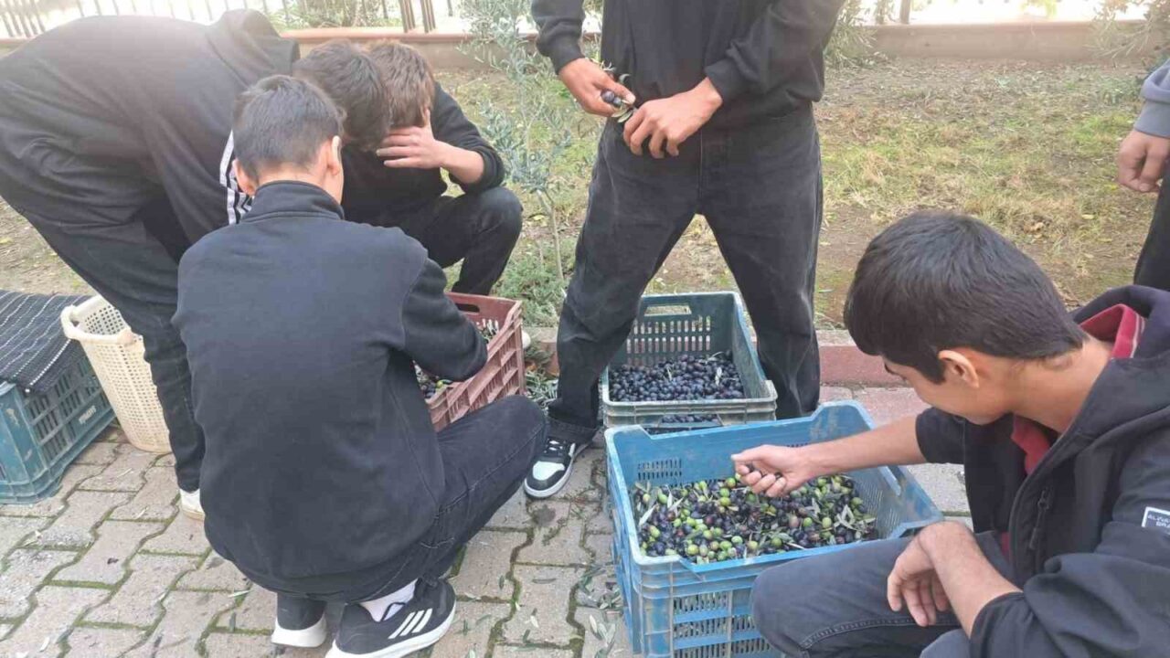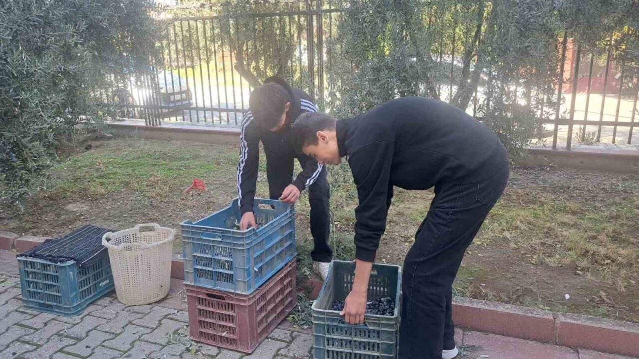 MANİSA’NIN GÖLMARMARA İLÇESİNDE BULUNAN HULKİ SANLITOP ANADOLU LİSESİ ÖĞRENCİLERİ, OKUL BAHÇESİNDEKİ ZEYTİN AĞAÇLARINDA HASAT SEZONUNU BAŞLATTI.