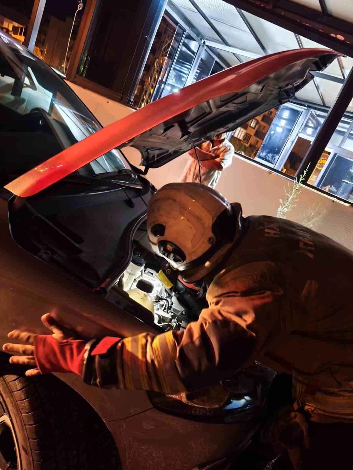 HATAY’DA SOĞUK HAVADA ARACIN MOTORUNA SIĞINAN YAVRU KEDİ, İTFAİYE EKİPLERİNİ VE ARAÇ SAHİBİNİ DAKİKALARCA UĞRAŞTIRDIKTAN SONRA KENDİLİĞİNDEN ÇIKTI.
