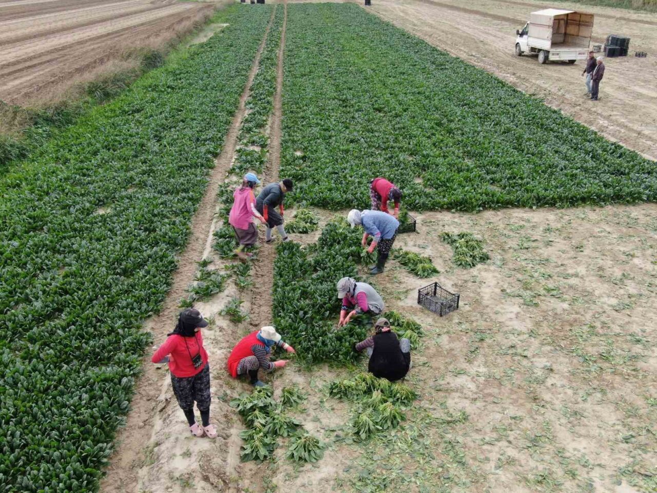Ispanak hasadının Ekim ayında başladığını ve hava koşullarına göre Nisan veya Mayıs ayına kadar sürebileceğini belirten tarım işçisi Serap Bora, “Sürekli ıspanak topluyoruz ve bu süreç 8-9 ay boyunca devam ediyor. Her sabah güneş doğmadan işe başlıyoruz, fakat kasa hesabı olduğu için gün biraz daha erken bitiyor. Genellikle saat 11.00-12.00 gibi eve dönüyoruz. Yorucu bir iş; sürekli çalışmak gerekiyor. Günlük alımımız 800 TL, dayıbaşı ile birlikte çalışanlar 770 TL alıyor; biz doğrudan patronla çalıştığımız için 800 TL kazanıyoruz” dedi.