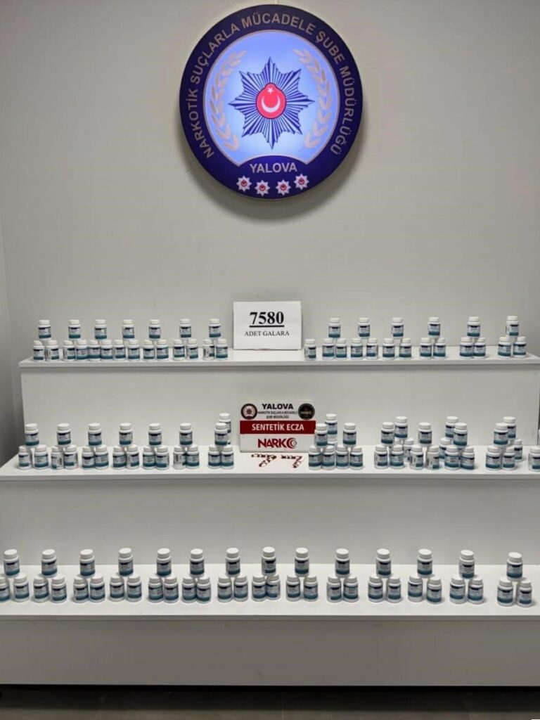 Edinilen bilgilere göre Yalova Emniyeti Narkotik Suçlarla Mücadele Şube Müdürlüğü, 15-22 Aralık tarihleri arasında çeşitli operasyonlar düzenledi. Bu operasyonlarda, 7 şüpheli yakalandı. Gözaltına alınan şüphelilerin ikametgahlarında ve araçlarında yapılan aramalarda önemli miktarda uyuşturucu madde ele geçirildi. Elde edilen bulgular arasında 7 bin 580 adet sentetik hap, 36,52 gram sentetik sıvı, 25,72 gram kimyasal madde, 12,63 gram kokain, 1,05 gram esrar, 2 adet tabanca ve 48 adet tabanca mermisi bulunuyor.