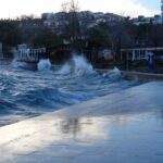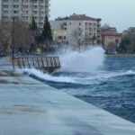 Çanakkale Boğazı’nda etkili olan lodos fırtınası sebebiyle gemi trafiği gece saat 03.00 itibarıyla çift yönlü olarak geçici olarak durduruldu. Çanakkale Boğazı’ndaki feribot seferleri de fırtına dolayısıyla geçici bir süre için durduruldu. Lodos fırtınası nedeniyle dev dalgalar kordonboyunda sahili adeta döverken, sahile ulaşan dev dalgalar eşliğinde vatandaşlar fotoğraf çektirdi.