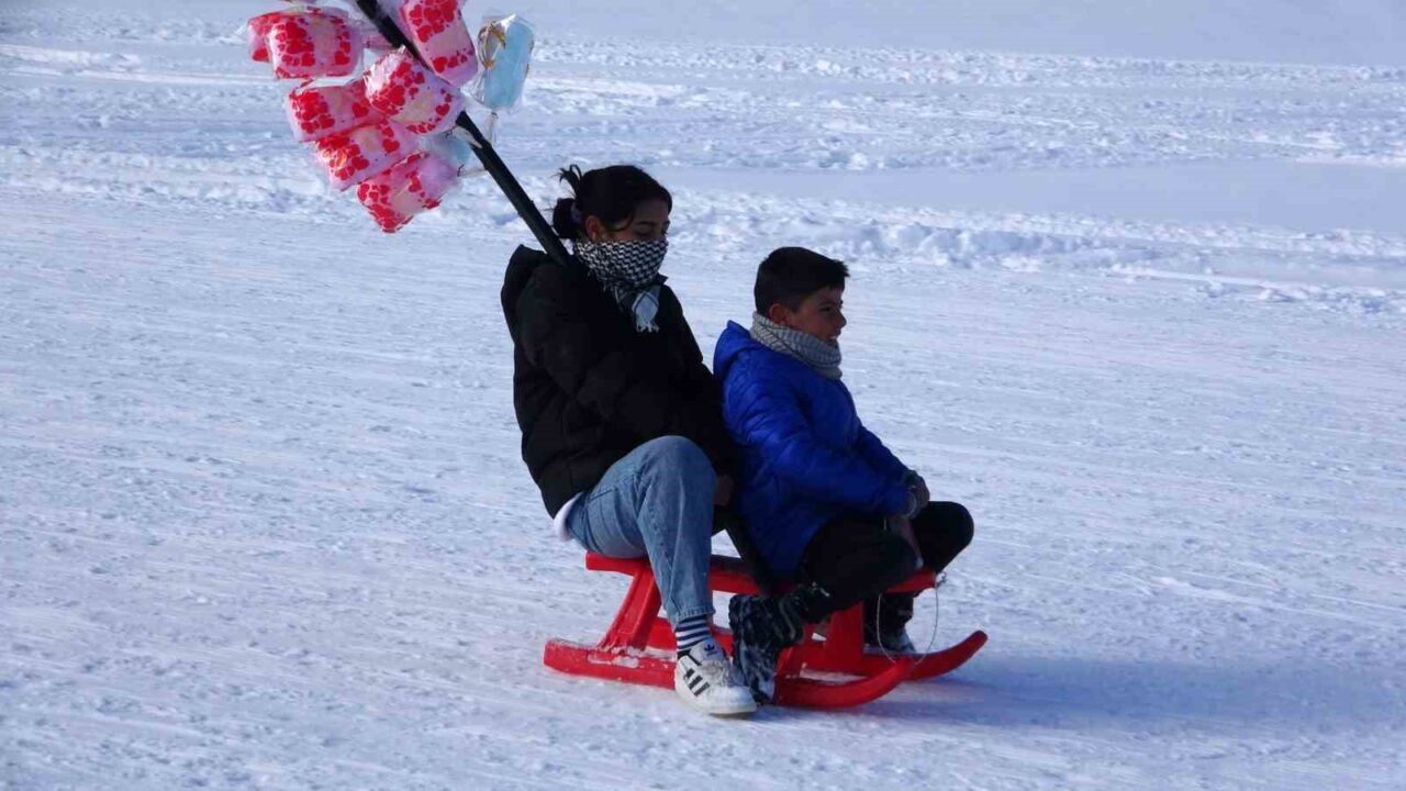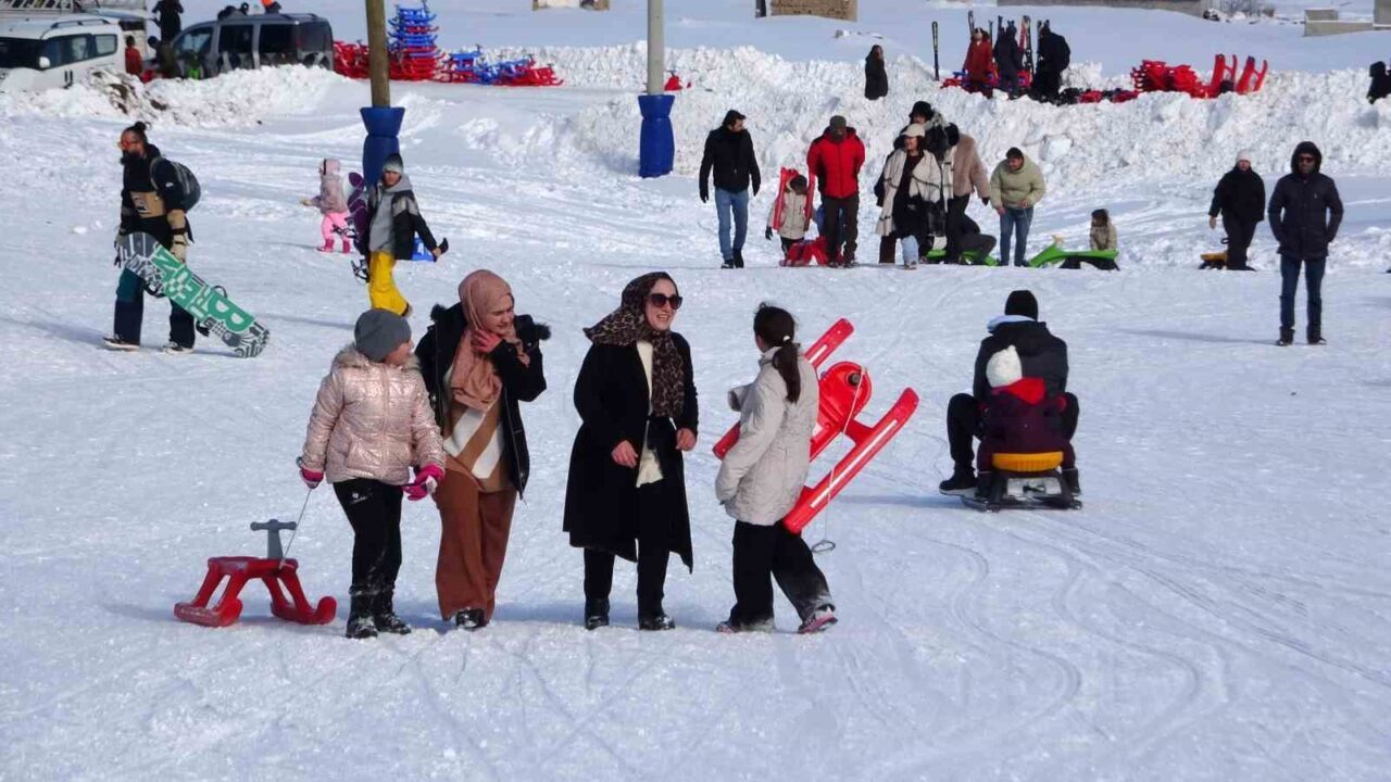 Van’ın Gevaş ilçesinde bulunan Abalı Kayak Merkezi, okulların yarıyıl tatiline girmesiyle birlikte özellikle çocuklar ve ailelerin akınına uğradı.