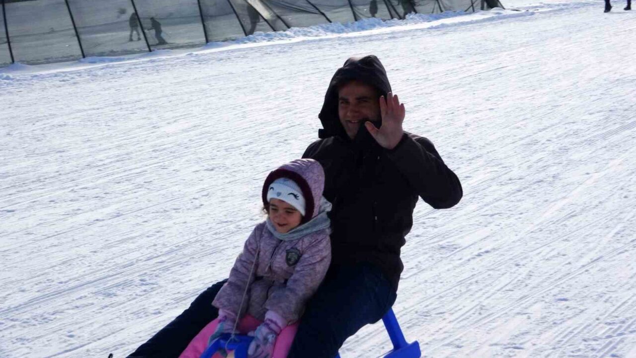 Aileleriyle birlikte kayak merkezine gelen çocuklar, kayak ve kızakla kaymanın heyecanını yaşarken pistlerde renkli görüntüler oluştu. İlk kez kayak yapan çocukların mutluluğu yüzlerine yansırken, aileler de çocuklarının sevincine ortak oldu. Tatili fırsat bilen aileler, çocuklarıyla birlikte kayak merkezinde keyifli ve unutulmaz anlar yaşadı.