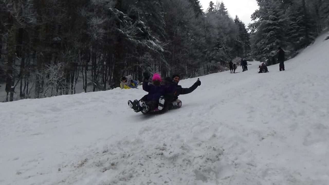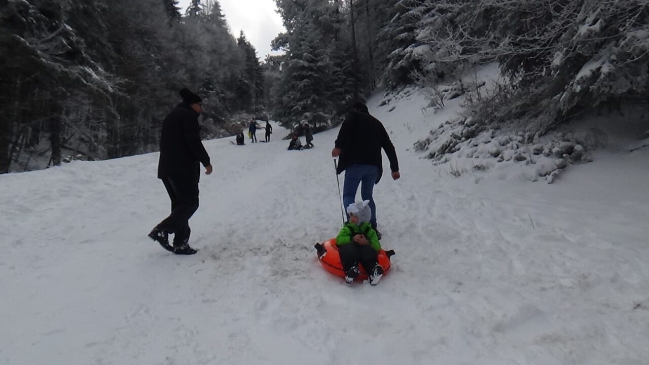 Abant ile özdeşleşen şambrelle kayma geleneği, bu kış sezonunda da renkli görüntülere sahne oldu. Ziyaretçiler, yanlarında getirdikleri şambrel ve poşetlerle tepelerden kayarak eğlenceli anlar yaşadı. Karda doyasıya eğlenen tatilcilerin keyif dolu anları kameralara yansıdı.