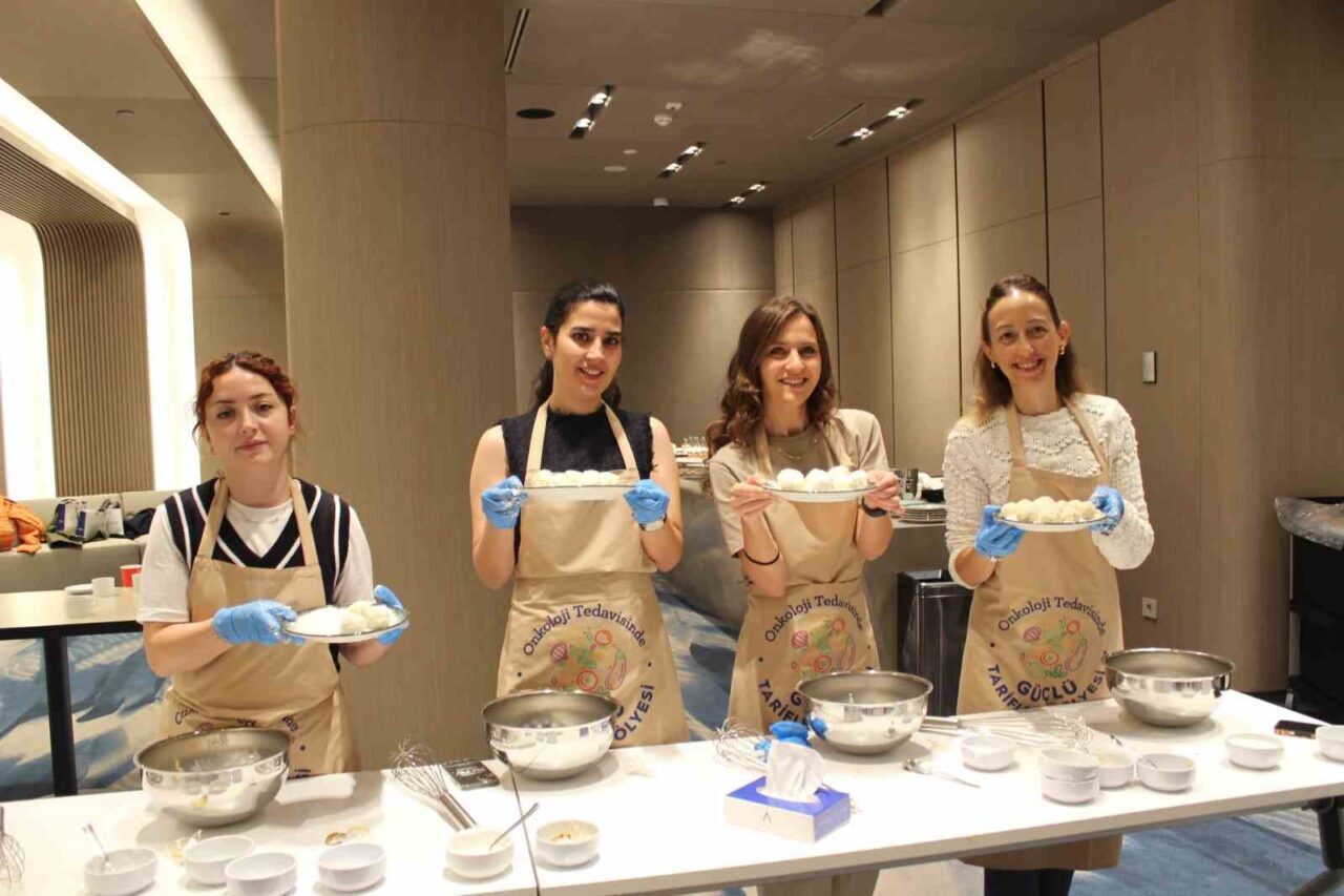 İzmir Acıbadem Kent Hastanesi’ne bağlı Onkoloji Merkezi’nde gerçekleştirilen atölye, Onkoloji Merkezi Koordinatörü Prof. Dr. Bülent Karabulut’un açılış konuşmasıyla başladı. Etkinlikte, onkoloji diyetisyeni Gamze Gültekin ve uzman psikolog Mehmet Güney Ziyalan, hasta yakınlarına önemli bilgiler sundu. Onkoloji uzmanları, hastalarla birlikte sağlıklı ve besleyici tarifleri denemek amacıyla yapılan çalışmaya katıldılar. Özellikle, yüksek protein içeren nohut unlu ekmek ve şeftali topları hazırlandı. Ayrıca, ekmeklerin yanında çeşitli nohutlu atıştırmalıklar ile tatlılar da hazırlandı. Etkinliğin sonunda, katılımcılara yan etkilere karşı beslenme çözümlerini barındıran tarif kitapçığı hediye edildi.