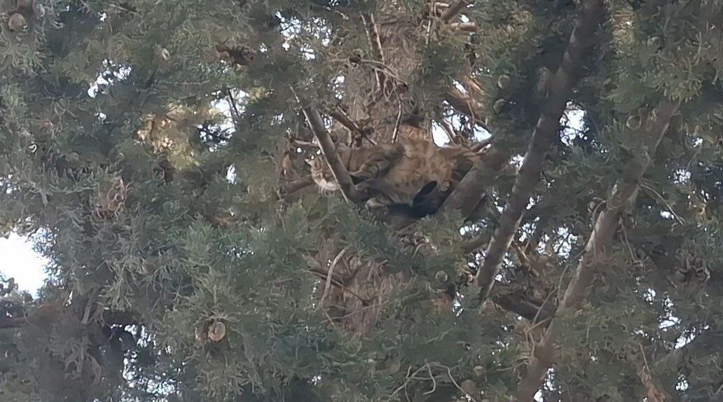Adana’nın Çukurova ilçesi Huzurevleri Mahallesi’nde, köpekten korkarak bir ağaca tırmanan kedi, 3 gün boyunca mahsur kaldığı yerden kurtarıldı.