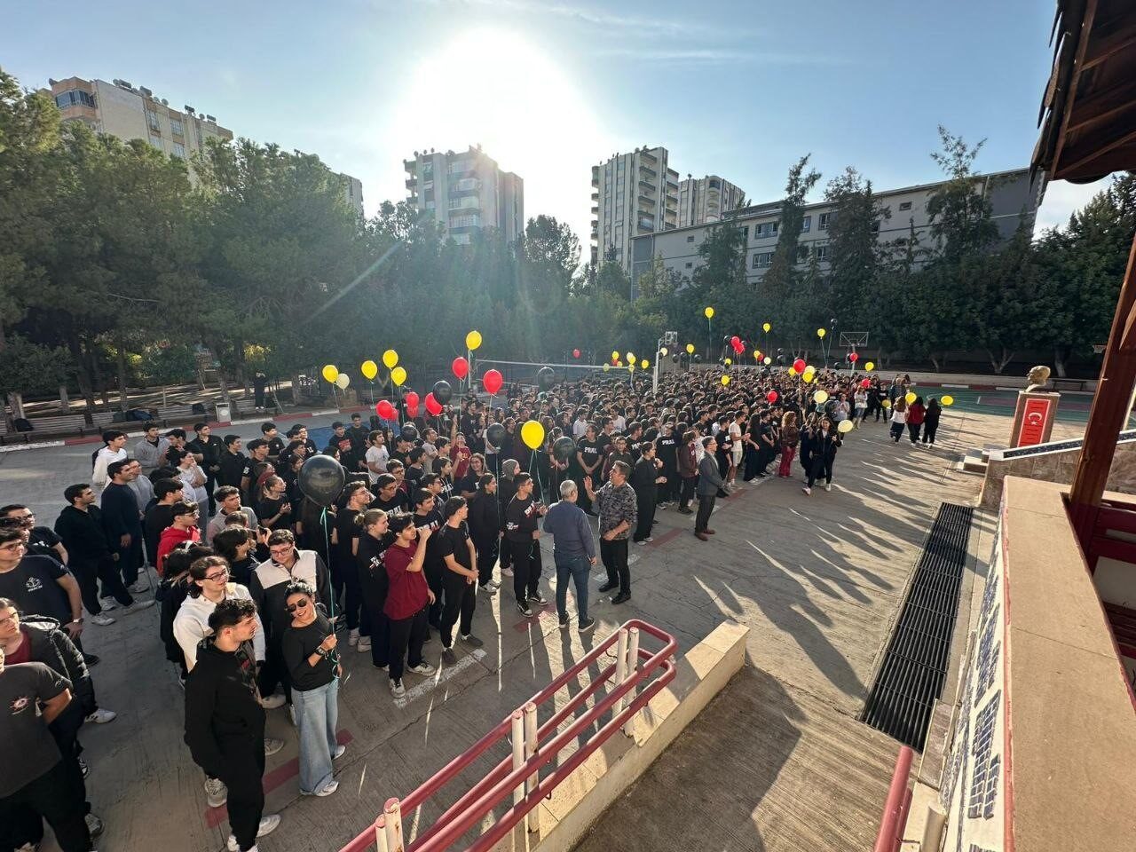 Okula dönüşleri sırasında düzenlenen sürpriz etkinlikte, öğretmenleri ve arkadaşları, öğrencileri renkli balonlarla karşıladı. İstiklal Marşı’nın okunduğu anlarda, öğrenciler ellerindeki uçan balonları gökyüzüne bırakarak kutlamalarını gerçekleştirdi.