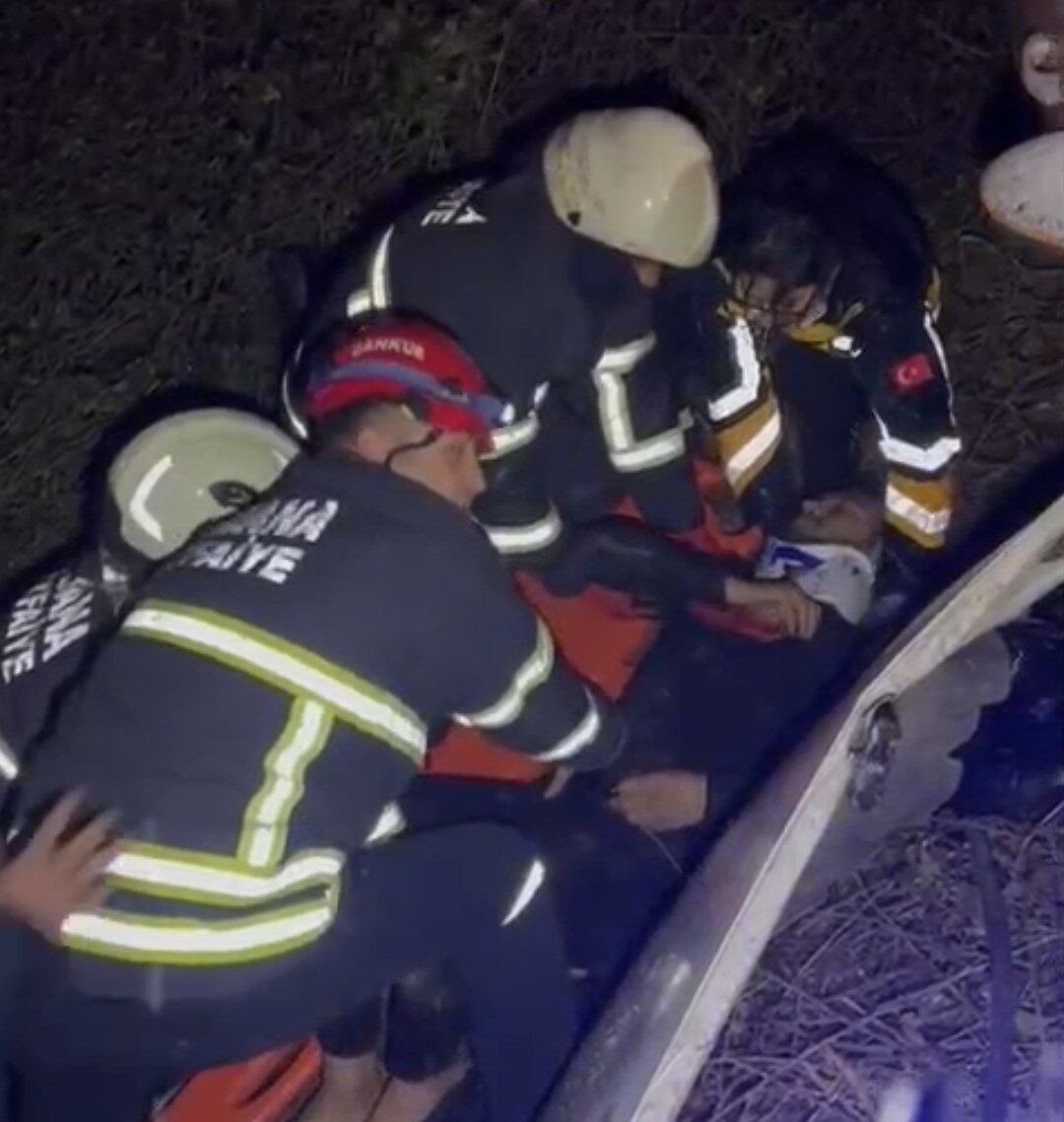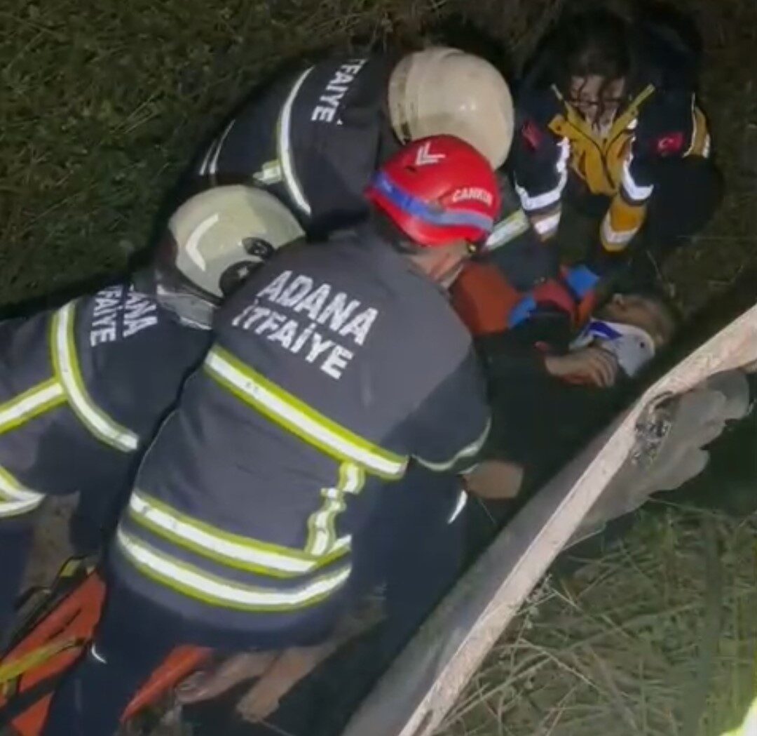 Adana’da Otoyolda Kontrolden Çıkarak Şarampole Yuvarlanan Otomobildeki 2 Kişi Yaralandı