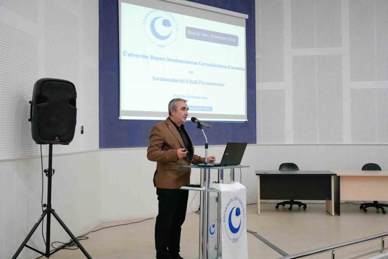 Konu ile ilgili olarak yapılan değerlendirmeler, Merkezi Araştırma Laboratuvarı Uygulama ve Araştırma Merkezi’nde düzenlenen bir toplantıda aktarıldı. Burada üniversitenin akademik personeli, THE sıralama süreci hakkında bilgilendirici sunumlar aldı ve Adıyaman Üniversitesi’nin gelecekte daha üst sıralarda yer alabilmesi için izlenebilecek yollar üzerine fikir alışverişinde bulunuldu.