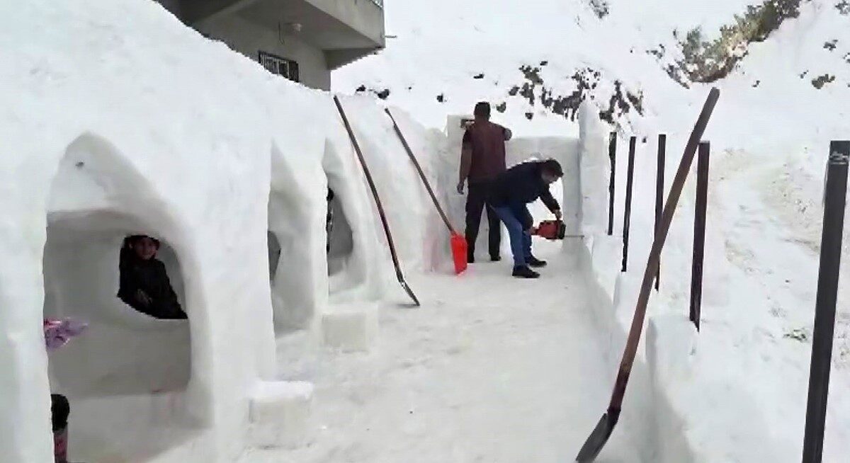 Adıyaman’ın Çelikhan ilçesinde bir vatandaş kardan oyun alanı ve evler yaparak çocuklarla beraber doyasıya eğlendi.