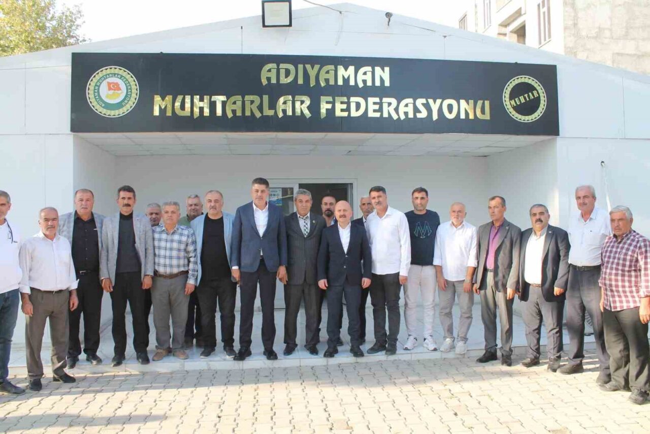 Adıyaman’ın Valisi Dr. Osman Varol ile AK Parti Milletvekili Doç. Dr. İshak Şan, 19 Ekim Muhtarlar Günü dolayısıyla bir araya geldi. Adıyaman Merkez Köy Muhtarları Derneği’ni ziyaret eden Vali Varol ve Milletvekili Şan, burada Başkan Hüseyin Göçer ve köy muhtarlarıyla bir süre görüştü. Daha sonra Adıyaman Muhtarlar Federasyonu’na geçerek, Federasyon Başkanı Abdulkadir Geylani Taş ve diğer muhtarlarla bir araya gelerek muhtarları kutladılar.