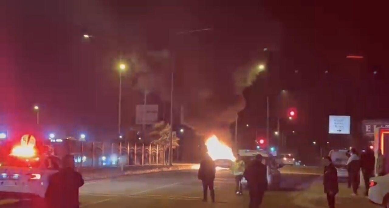 Adıyaman’da seyir halindeki otomobil alev alev yandı