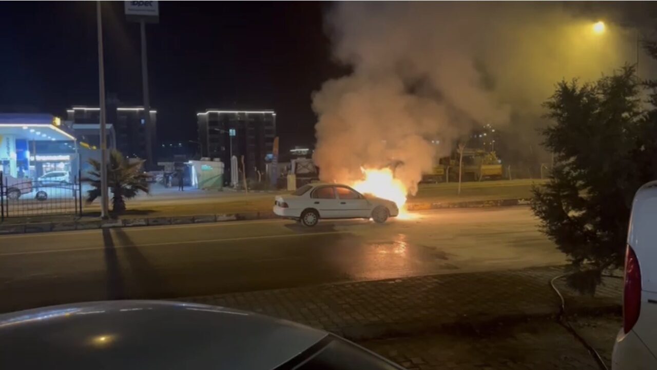 Adıyaman’da seyir halindeki otomobil alev alev yandı