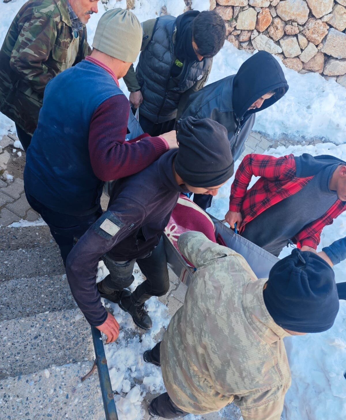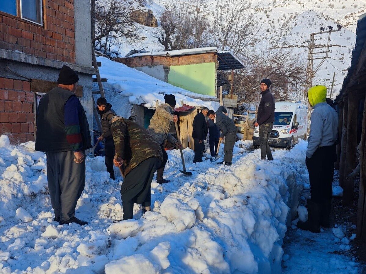 Adıyaman’ın Sincik ilçesi İnlice beldesinde ambulansın hastaya ulaşabilmesi için vatandaşlar küreklerle yolu açmaya çalıştı.
