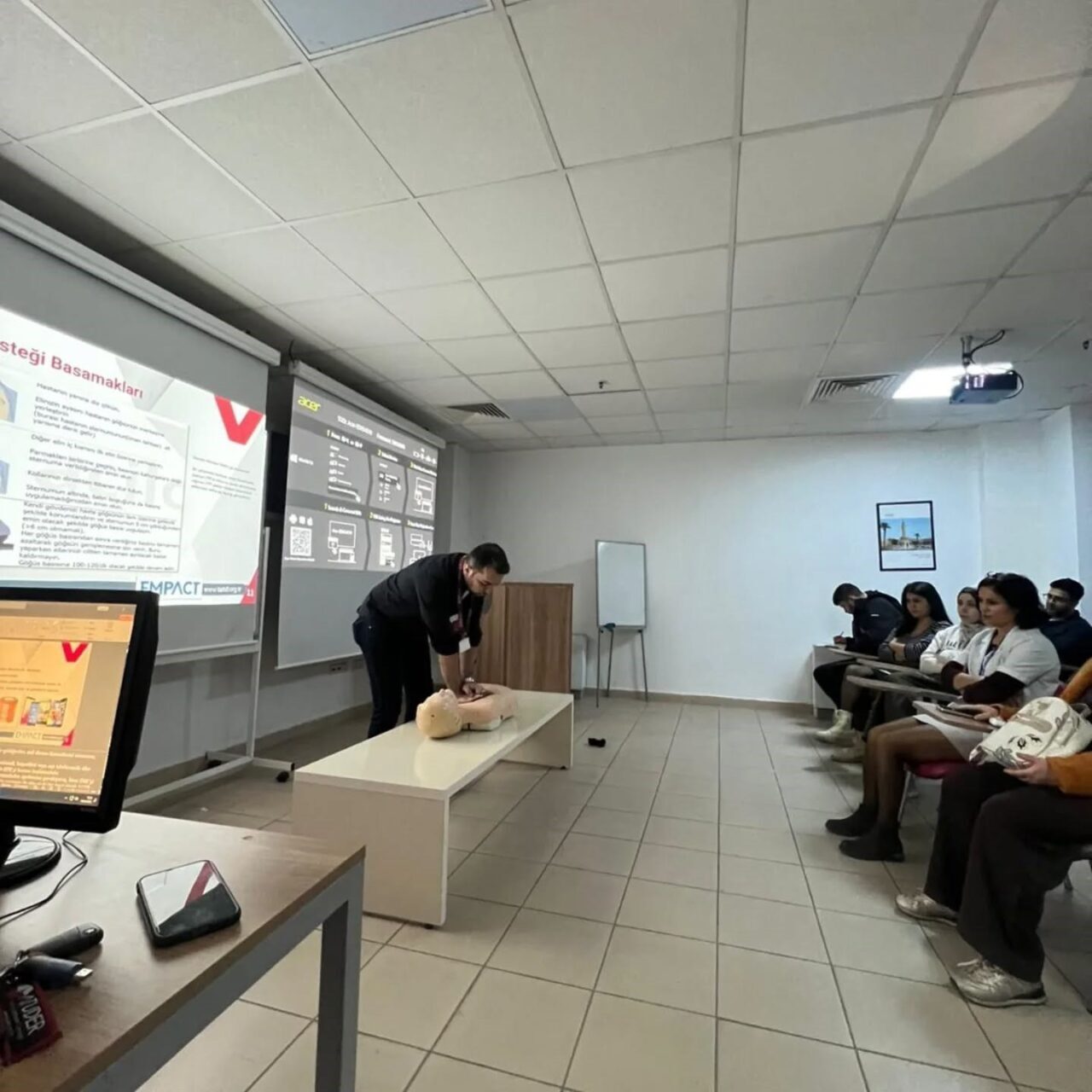 Eğitimle, kontrast madde kullanımı sırasında ve sonrasında gelişebilecek olası kardiyak arrest durumlarında doğru ve etkili müdahalenin sağlanması hedeflendi. Eğitim, Dr. Öğr. Üyesi Ahmet Melih Savaş tarafından teorik ve uygulamalı şekilde yapıldı. Program dahilinde ani kalp durması durumunda yapılması gereken temel müdahaleler, doğru kalp masajı teknikleri ve solunum desteği uygulamaları detaylı bir şekilde ele alındı. Eğitim süresince acil durumlarda hızlı ve etkili müdahalenin hayati önemi vurgulandı; katılımcılar uygulamalı çalışmalarla bilgi ve becerilerini pekiştirme fırsatı buldu. Aydın Adnan Menderes Üniversitesi (ADÜ) Araştırma ve Uygulama Hastanesi yönetimi tarafından yapılan açıklamada, sağlık hizmetlerinin kalitesini ve hasta güvenliğini artırmaya yönelik eğitim faaliyetlerinin tüm birimleri kapsayacak şekilde düzenli olarak devam edeceği belirtildi.