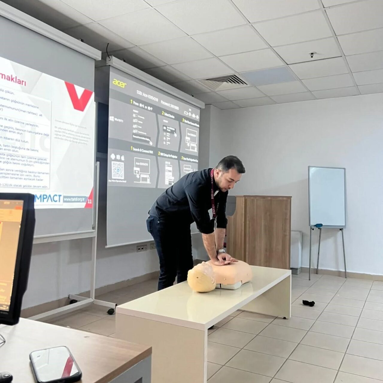 Aydın Adnan Menderes Üniversitesi (ADÜ) Araştırma ve Uygulama Hastanesi Radyoloji Bölümünde görev yapan sağlık çalışanlarına, kontrast madde kullanımına bağlı gelişebilecek acil durumlara karşı Temel Yaşam Desteği (CPR) eğitimi verildi.