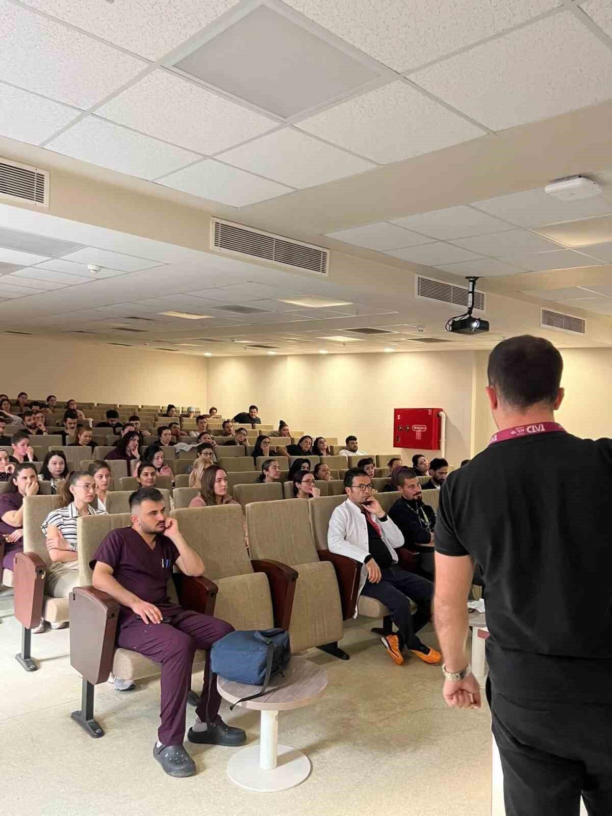 Eğitim, Acil Tıp Anabilim Dalı’ndan Dr. Öğr. Üyesi Ahmet Melih Savaş tarafından verildi. Katılımcılara, kalp durması, solunum yetmezliği ve ani bilinç kaybı gibi acil durumlarda uygulanması gereken temel yaşam desteği yöntemleri teorik bilgilerle birlikte uygulamalı olarak aktarıldı.