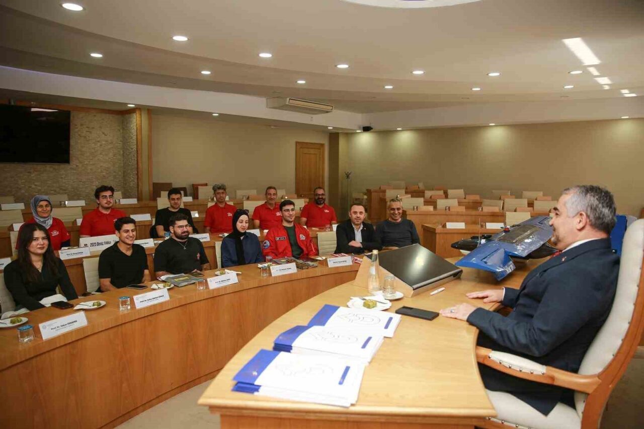Aydın Adnan Menderes Üniversitesi (ADÜ) Rektörü Prof. Dr. Bülent Kent, Teknofest 2025’te finalist olmayı başaran takım üyeleriyle buluştu.