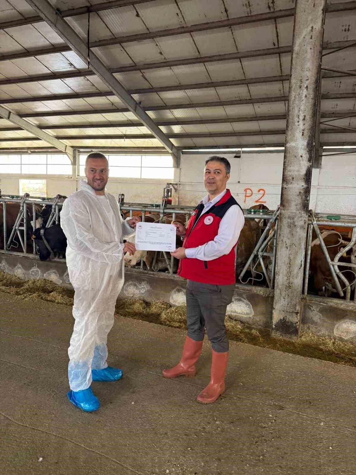 Hayvancılığın sürdürülebilirliği ve hem insan hem de hayvan sağlığının korunması amacıyla yürütülen Hastalıktan Ari İşletmeler Yönergesi kapsamındaki resmi denetimler tamamlandı. Bu çerçevede, İl Tarım ve Orman Müdürü Özkan Parlak, başarılı işletmeyi ziyaret etti. Parlak, ari sertifikalarının hayvancılıkta kalite ve verimliliği artırmada büyük önem taşıdığına dikkat çekti. Ayrıca, bu tür işletmelerin daha fazla teşvik edilmesi için gereken çalışmaların devam edeceğini vurguladı. Ziyaretin sonunda, işletme sahibi Mustafa Koca’ya sertifikası takdim edildi.