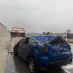 Afyonkarahisar’da kontrolden çıkarak yol kenarındaki refüje devrilip metrelerce sürüklenen otomobilin sürücüsü şans eseri kazayı yaralı atlattı.
