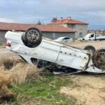 Afyonkarahisar’da kontrolden çıkarak yol kenarındaki şarampole giren ve devrilen otomobilin sürücüsü yaralandı.