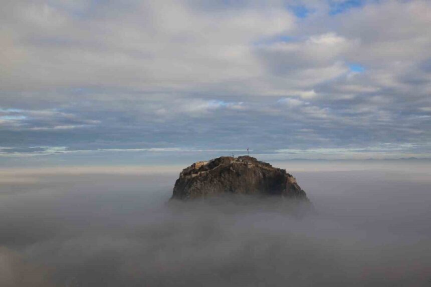 Afyonkarahisar’ın simgesi Karahisar Kalesi ile birlikte kentin farklı noktalarından çekilen sis görüntüleri görenleri mest etti.
