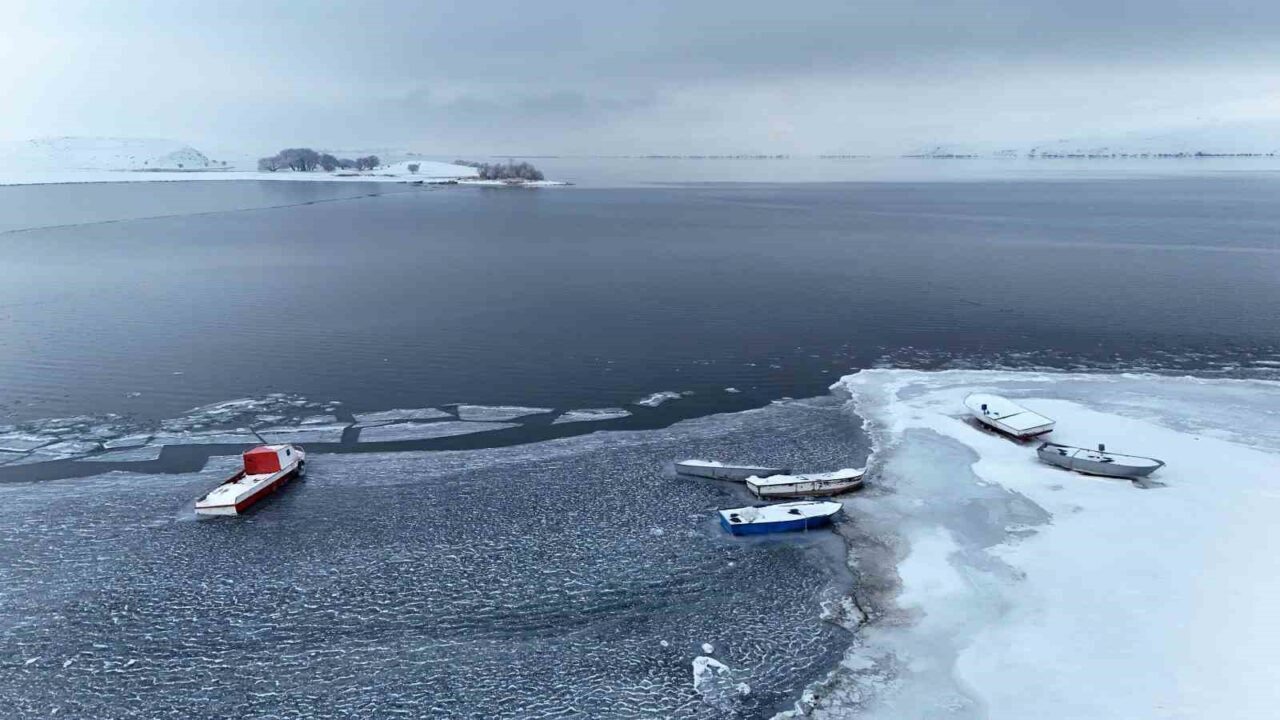 Bitlis’in Ahlat ilçesinde etkili olan dondurucu soğuklar, Nazik Gölü’nün yüzeyinin kısmen donmasına neden oldu.