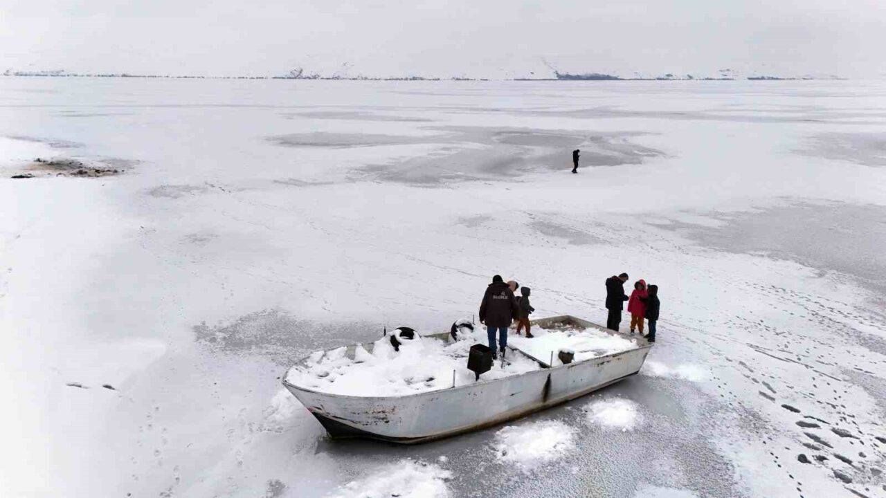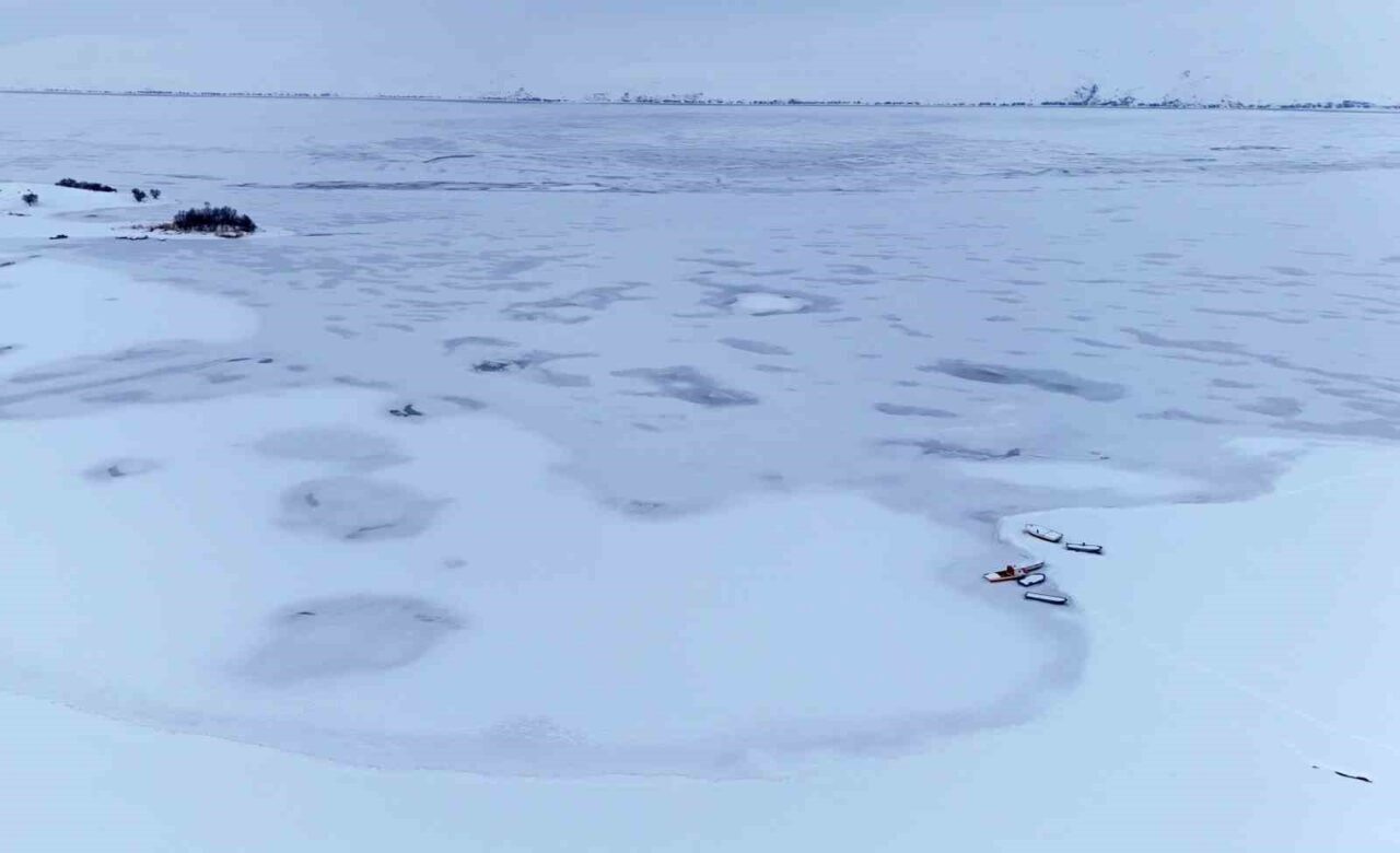 Bitlis’in Ahlat ilçesindeki Nazik Gölü şiddetli soğuk nedeniyle tamamen dondu.