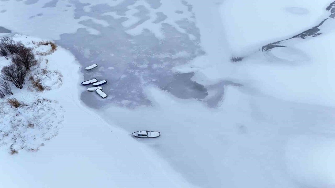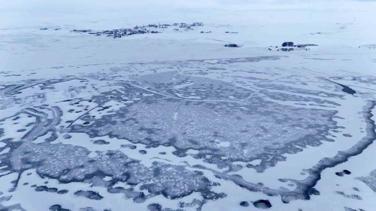 Bitlis’in Ahlat ilçesindeki Nazik Gölü şiddetli soğuk nedeniyle tamamen dondu.