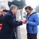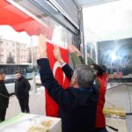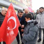 AK Parti Erzurum İl Başkanı Av. İbrahim Küçükoğlu, Aziziye ilçesinde esnaf ve vatandaşlara bayrak dağıttı.