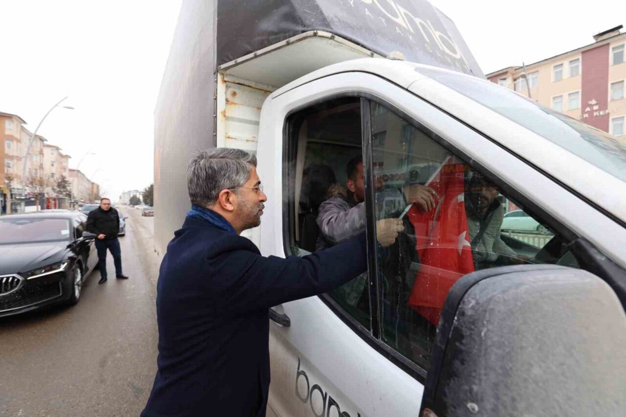 AK Parti Erzurum İl Başkanı Av. İbrahim Küçükoğlu, Aziziye ilçesinde esnaf ve vatandaşlara bayrak dağıttı.