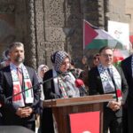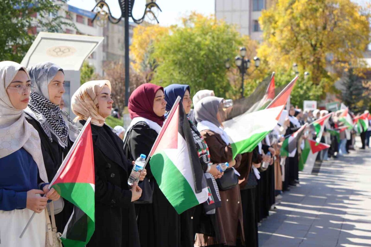 Yakutiye Kent Merkezi’nde bir araya gelen kadınlar, Gazze’ye destek olmak amacıyla el ele tutuşarak sembolik bir zincir oluşturdu. Etkinliğe AK Parti Erzurum Milletvekili Selami Altınok ve AK Parti Erzurum İl Başkanı İbrahim Küçükoğlu da katılarak destek verdi.