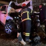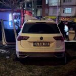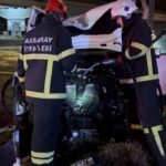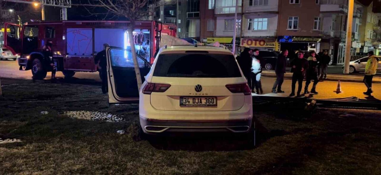 Aksaray’da Aydınlatma Direğine Çarpan Otomobilde Yangın Çıktı