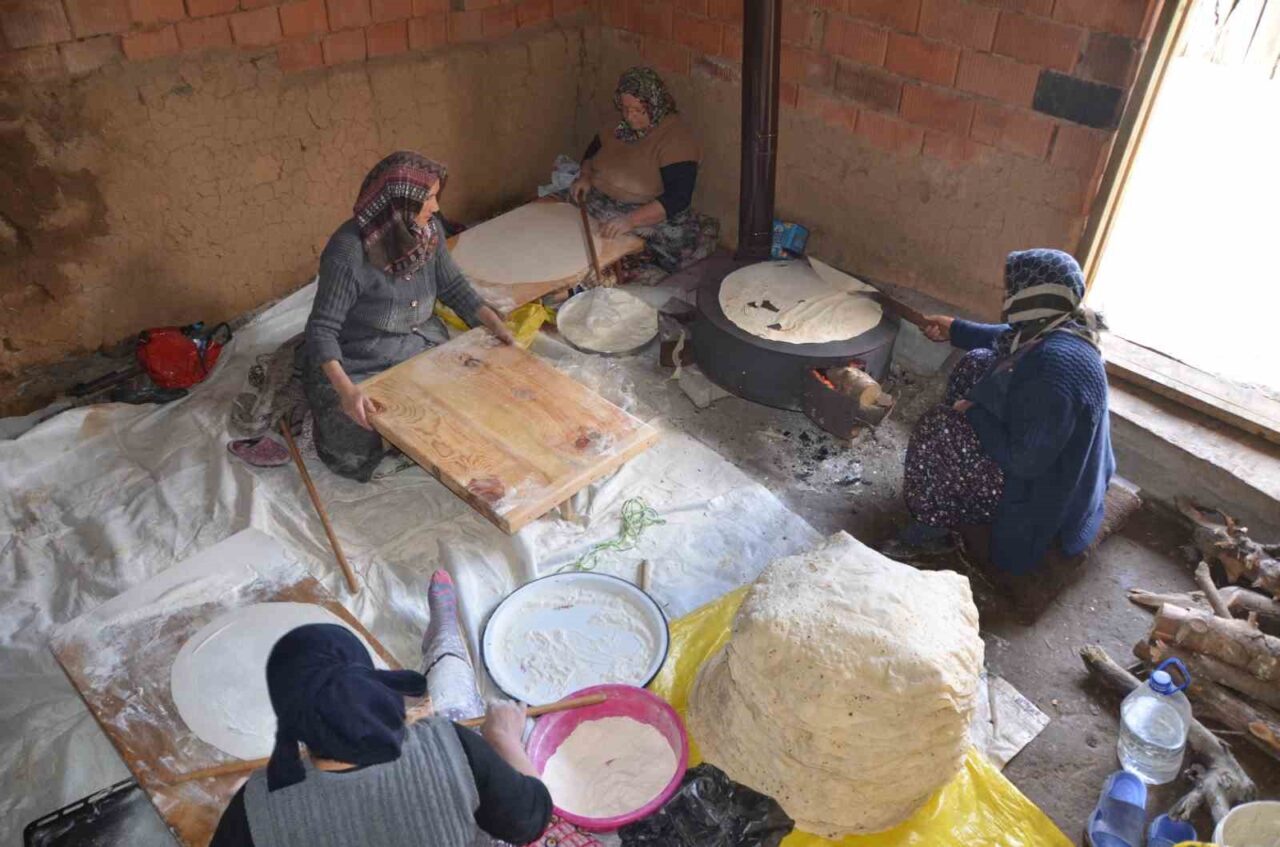 “Ekmek yalnız pişmez. Komşularla sırayla, bir gün birimizin bir gün diğerimizin ekmeğini yapıyoruz. Yaptığımız yufkalar yaza kadar yetiyor. Yazın da tekrar yapıyoruz. Bu bizim için bir zorunluluk ve gelenek” ifadelerini kullandı.
