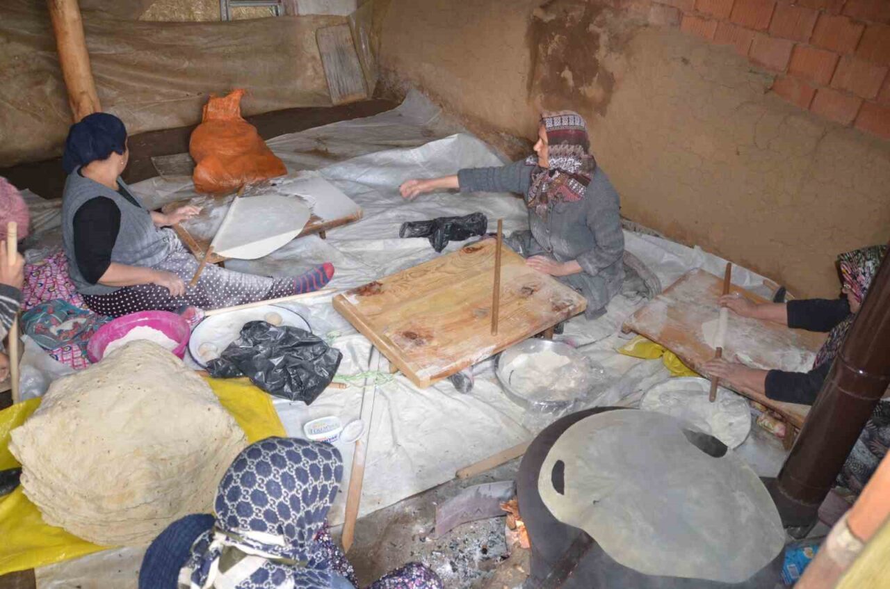 Antalya’nın Akseki ilçesinde kadınlar, kışlık yufka ekmek hazırlıkları için imece usulü bir araya gelmeye başladı.